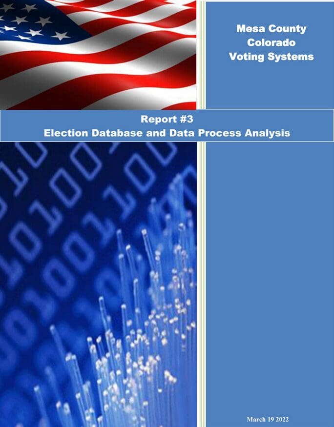 The report — officially called Mesa County Colorado Voting Systems Report #3 — was written by experts who analyzed all the data from Mesa County’s election server, which was saved before the Colorado Secretary of State and the electronic voting machine company “overwrote” and wiped away the contents of the server’s hard drive.